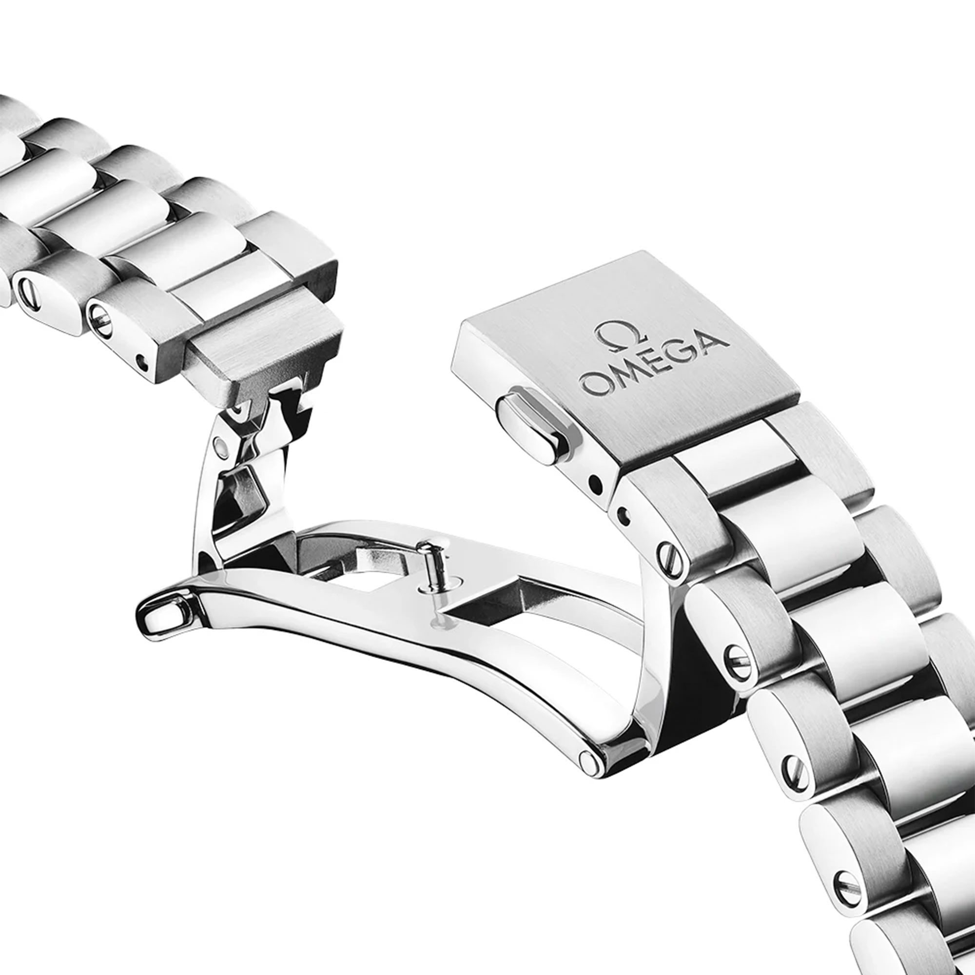 Integruota metalinė apyrankė su šlifuota ir poliruota apdaila bei patogi OMEGA reguliavimo sistema užtikrina patogų nešiojimo pojūtį. Šiame modelyje sumontuotas Šveicarijos federalinio metrologijos instituto (METAS) sertifikuotas OMEGA Co-Axial Master Chronometer Caliber 8900 laikrodis, atitinkantis aukščiausius laikrodžių gamybos pramonės standartus.