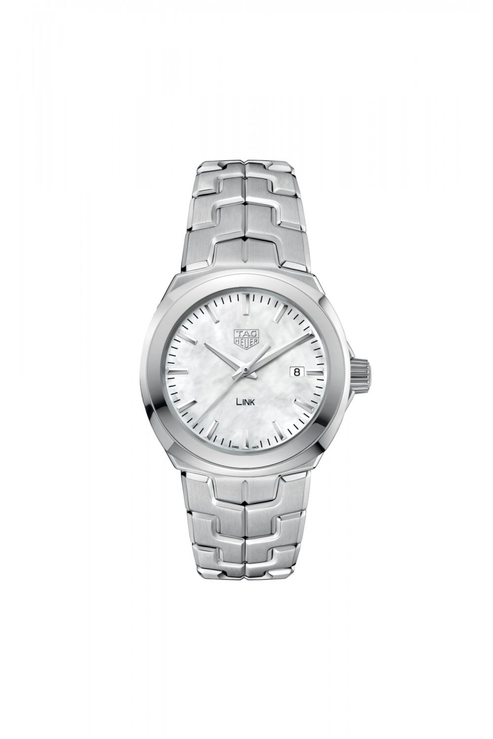 The iconic Link Lady Quartz with a natural white mother-of-pearl dial. The slender, 32mm case is stainless steel hand polished and fine-brushed to perfection.