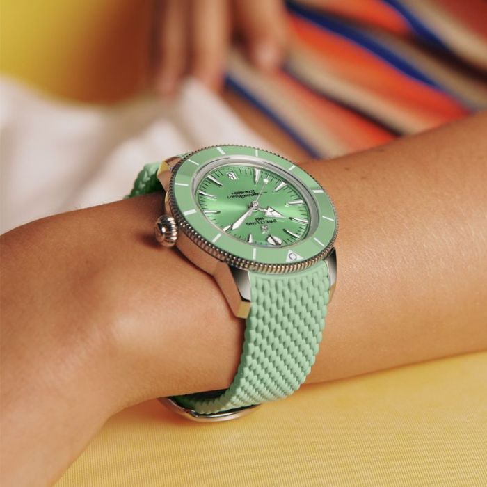 Созданные для плавания между волнами и берегом, первые часы Breitling, выпущенные в 1957 году, выделялись среди других дайверских часов той эпохи. Ref. 1004 (элегантные часы с индикацией только времени) и Ref. 807 (первый в мире специализированный дайверский хронограф) были не просто инструментами для исследования подводного мира — они были созданы, чтобы выглядеть стильно. Их стрелки в форме копья и стрелы, анодированный вращающийся безель и естественно элегантные пропорции сделали их фаворитами стильных искателей приключений, которые жили ради моря и природы. Сегодня эта философия остается в основе Superocean Heritage. Она сохраняет душу 1950-х годов, но разработана для современности. Новейшая модель Superocean Heritage развивает все, что делало оригинал уникальным, и совершенствует это еще больше. Керамический безель обеспечивает исключительную устойчивость к царапинам, а интегрированные металлические или резиновые браслеты плотно прилегают к корпусу и застегиваются на раскладывающиеся застежки, обеспечивая аккуратную и водонепроницаемую отделку. Сдержанное окошко даты на отметке «6 часов» и фирменные стрелки — стрела для часов и копье для минут — обеспечивают читаемость и сбалансированность как над водой, так и под ней.
